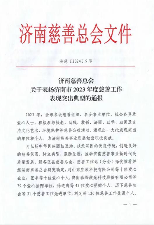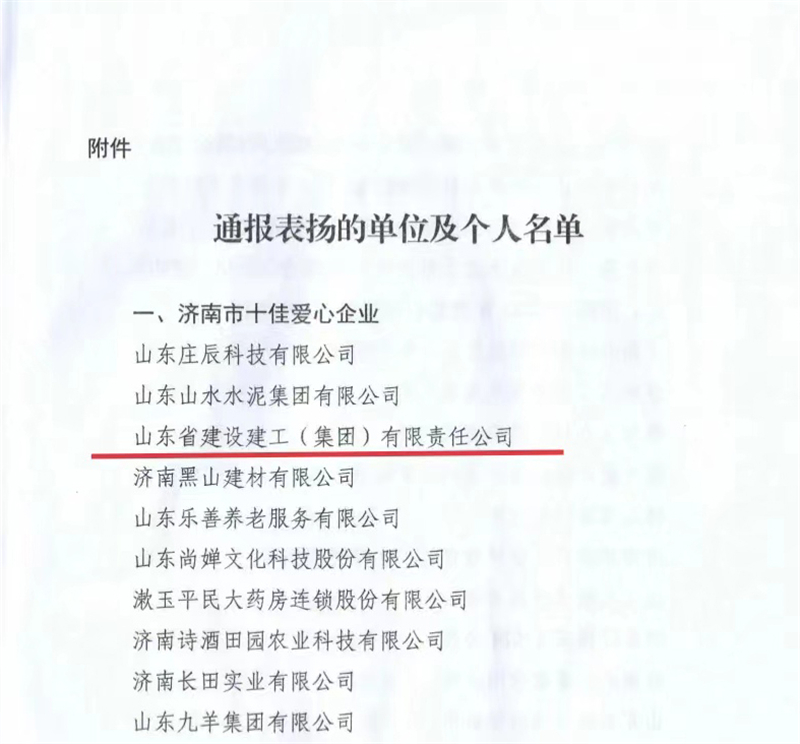 會上宣讀了《關于表揚濟南市2023年度慈善工作表現突出典型的通報》,對2023年度愛心捐贈單位及愛心十佳個人進行表彰。山東建工集團榮獲“濟南十佳愛心企業”榮譽稱號。