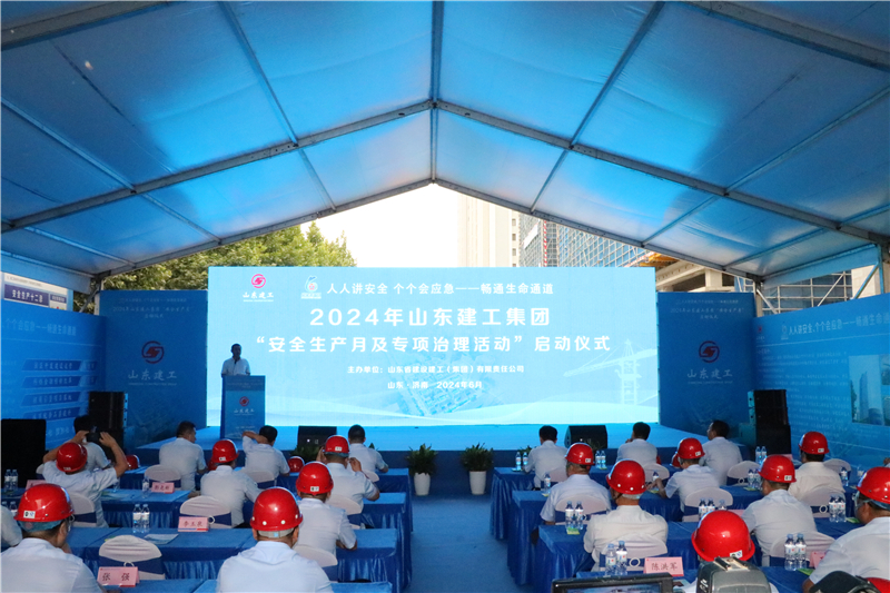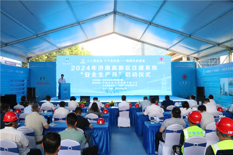 儀式上,集團王彥宏董事長、濟南高新智慧谷投資置業有限公司董事長兼總經理常艷麗分別致辭;高新區規劃建設部副部長劉嘯鵬宣讀《2024年濟南高新區住建系統“安全生產月”活動實施方案》;與會全員觀看“安全生產月”主題宣傳片《暢通生命通道》,濟南前沿科創基地項目應急救援演練視頻和《塔機自動駕駛系統》應用宣傳片。高新區黨工委委員、管委會副主任李濤講話。最后,與會領導共同啟動2024年濟南高新區住建系統“安全生產月”活動。