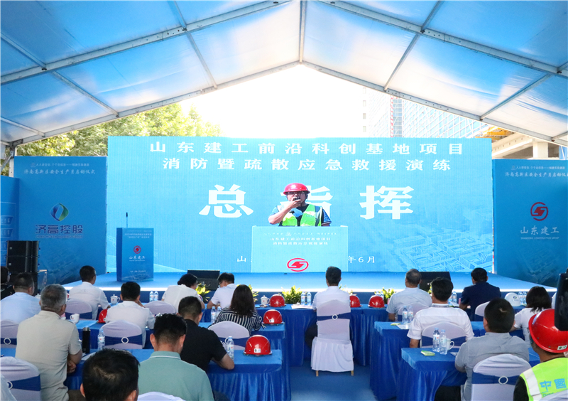 6月6日,“2024年高新區住建系統安全生產月活動啟動儀式”在集團承建的前沿科創基地項目隆重舉行。濟南高新區黨工委委員、管委會副主任李濤,高新區規劃建設部部長嚴雷,高新區應急管理部部長董鳳,高新區消防救援大隊教導員王磊,高新區規劃建設部副部長劉嘯鵬,孫村街道黨工委委員、辦事處副主任孫志霞;集團黨委書記、董事長王彥宏,副總經理、安全總監蘇世凱,工程部總經理李冬冰等出席活動。