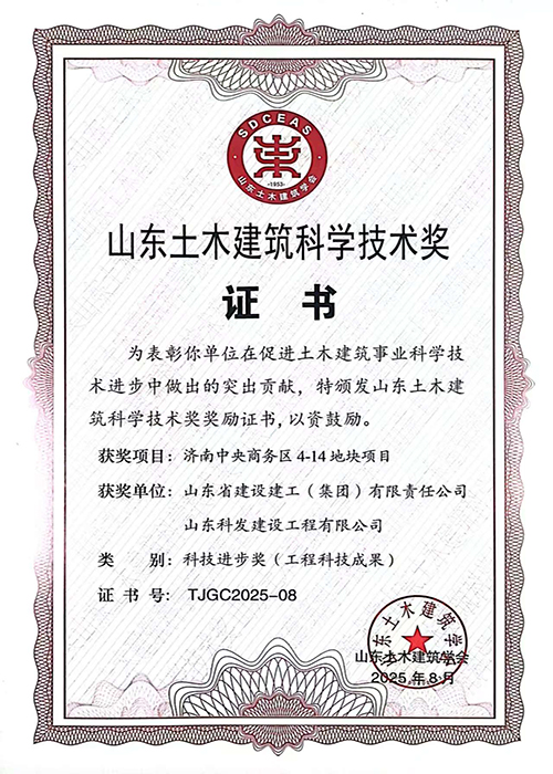 山東土木建筑科學技術獎:濟南中央商務區4-14地塊項目
